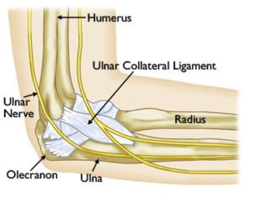 This popular chart of the shoulder and elbow illustrates normal shoulder and elbow anatomy. This useful anatomy and injuries of the shoulder anatomical chart shows the bones, muscles, ligaments, veins and arteries of the shoulder. Ossification of the ulna bone. Modified from marieb et al, human anatomy, 7th edition. The name for the elbow in latin is cubitus, and so the word cubital is used in some elbow related terms, as in cubital nodes for example.